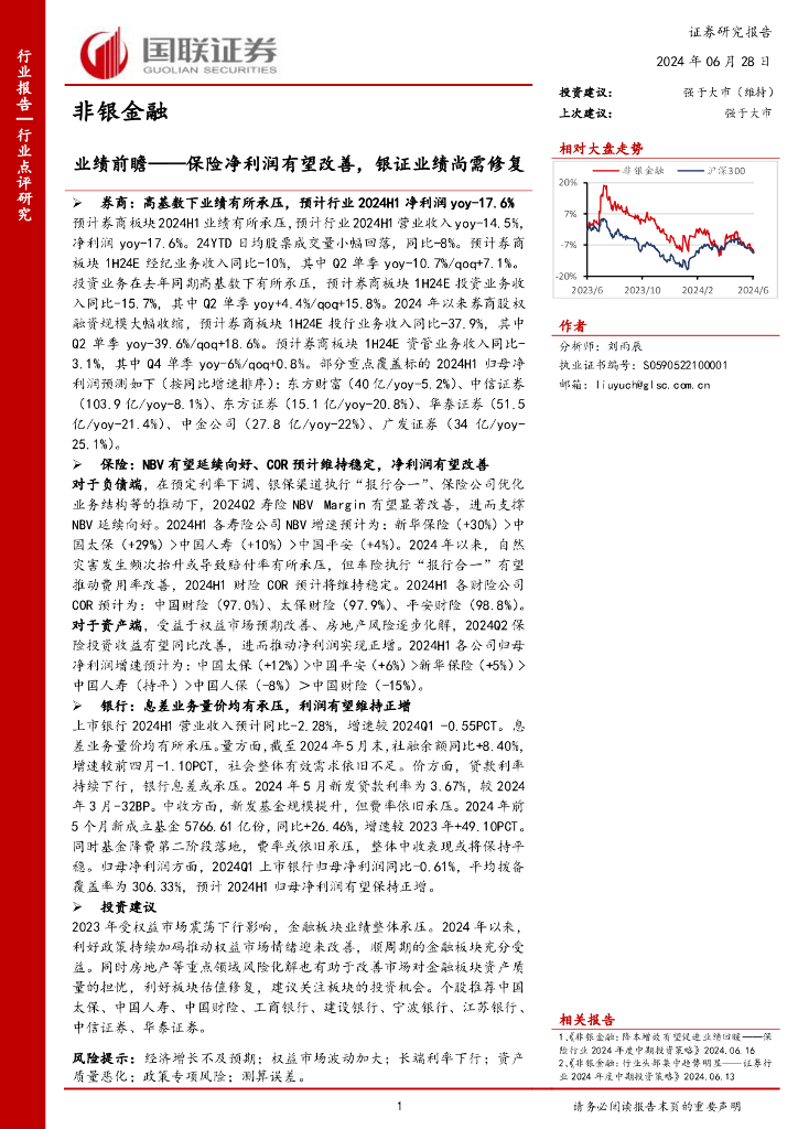国联证券:非银金融业绩前瞻:保险净利润有望改善,银证业绩尚需修复.pdf
