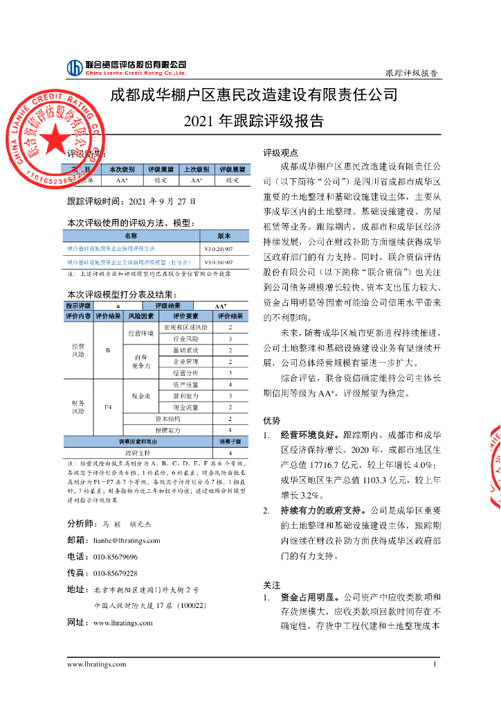 联合资信:成都成华棚户区惠民改造建设有限责任公司2021年跟踪评级报告.pdf