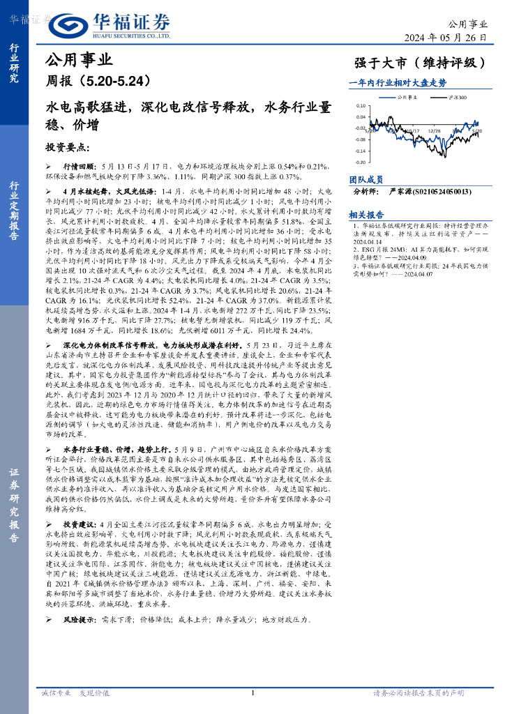 华福证券:公用事业行业周报:水电高歌猛进,深化电改信号释放,水务行业量稳、价增.pdf