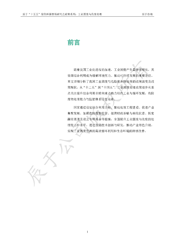 辰于:2025“十五五”绿色环保市场研究之政策系列之二:工业固废与危废处理.pdf