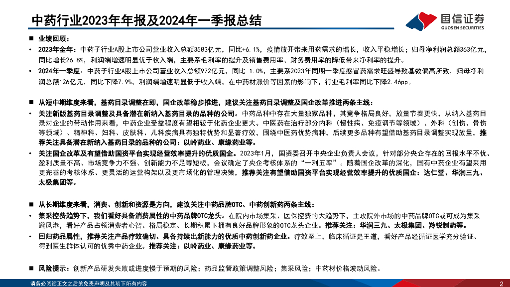 国信证券:中药行业2023年年报及2024年一季报总结:2023年稳健增长,高基数下2024年一季度略有下滑.pdf