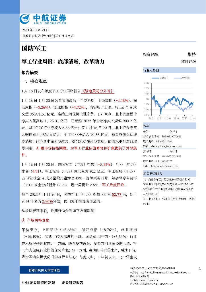 中航证券:军工行业周报:底部清晰,改革助力.pdf