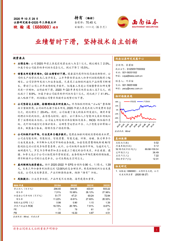 西南证券:映翰通(688080)-2020年三季报点评:业绩暂时下滑,坚持技术自主创新.pdf