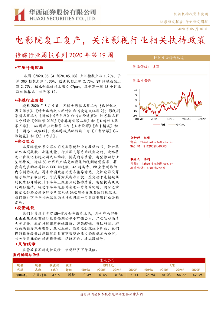 华西证券:传媒行业周报系列2020年第19周:电影院复工复产,关注影视行业相关扶持政策.pdf