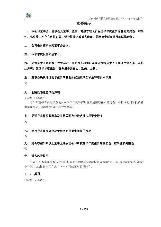 600883-博闻科技:云南博闻科技实业股份有限公司2025年半年度报告.pdf