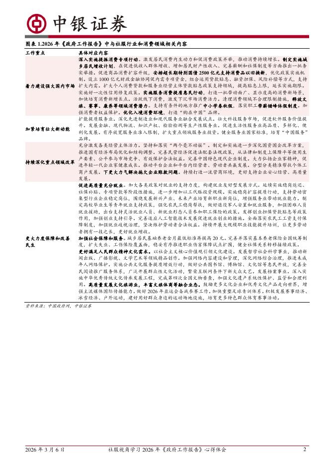 中银证券:社服视角学习2026年《政府工作报告》心得体会:维稳增长,内需主导,促进消费持续提升.pdf