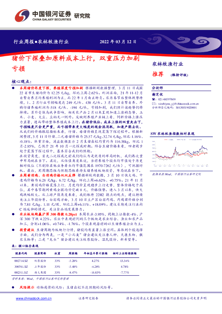 中国银河:农林牧渔:猪价下探叠加原料成本上行,双重压力加剧亏损.pdf
