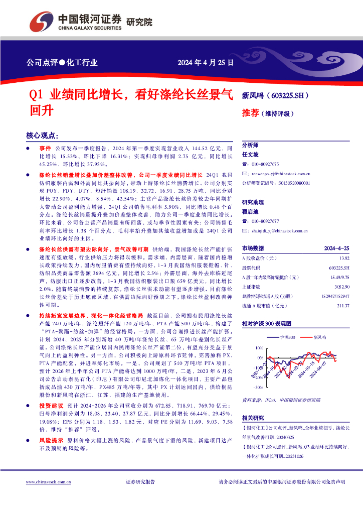 中国银河:新凤鸣(603225)-Q1业绩同比增长,看好涤纶长丝景气回升.pdf