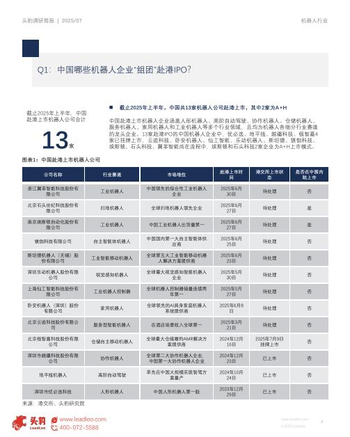 头豹研究院:中国机器人行业调研简报|2025/07:市场洞察:机器人热潮烧到资本市场,港交所成“智能制造第二战场”?.pdf