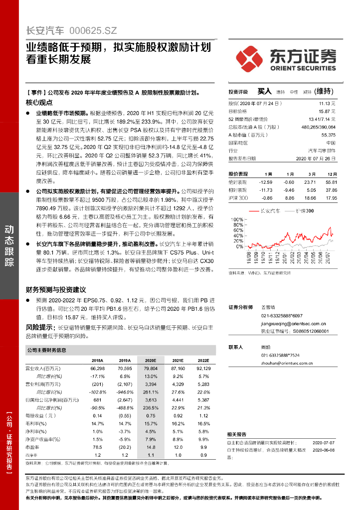 东方证券:长安汽车(000625)-业绩略低于预期,拟实施股权激励计划看重长期发展.pdf