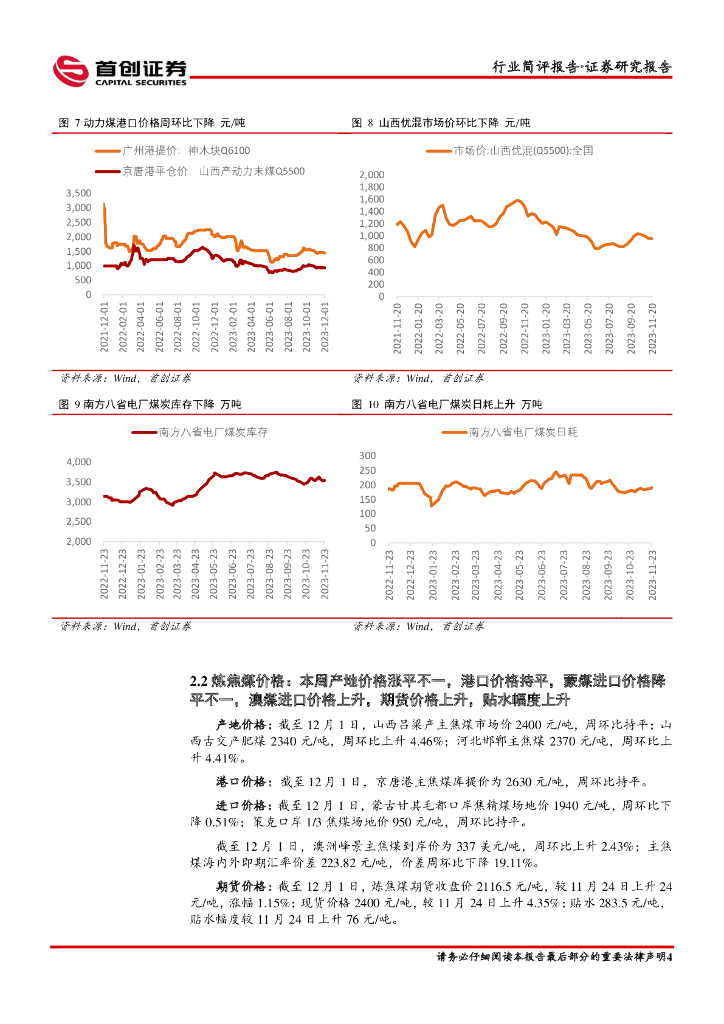 首创证券:煤炭开采行业简评报告:需求疲软仍在持续,煤价保持震荡.pdf