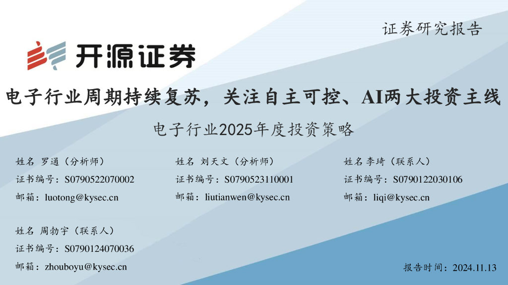开源证券:电子行业2025年度投资策略:电子行业周期持续复苏,关注自主可控、AI两大投资主线.pdf