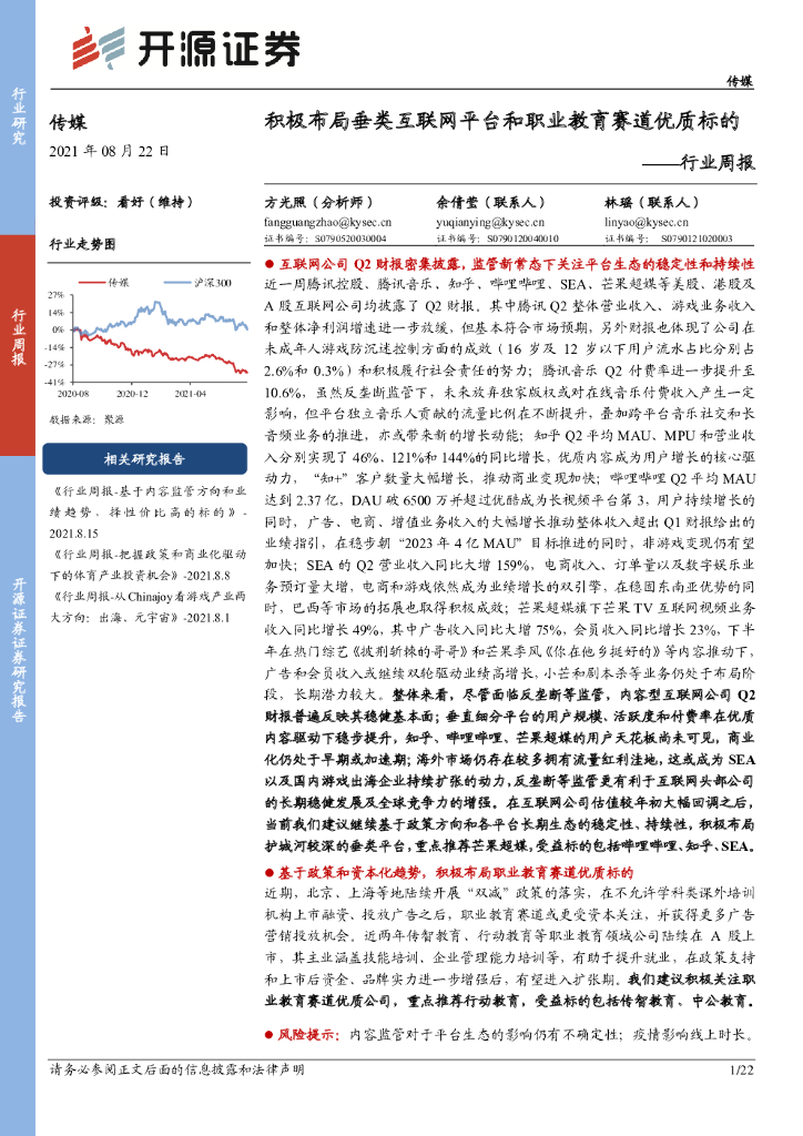 开源证券:传媒行业周报:积极布局垂类互联网平台和职业教育赛道优质标的.pdf