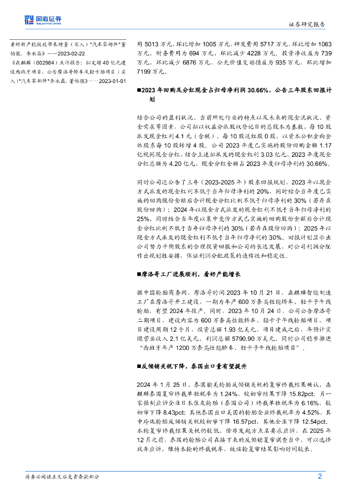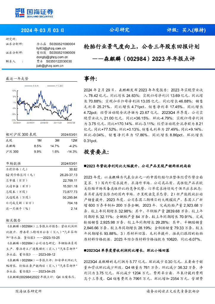 国海证券:森麒麟(002984)-2023年年报点评:轮胎行业景气度向上,公告三年股东回报计划.pdf