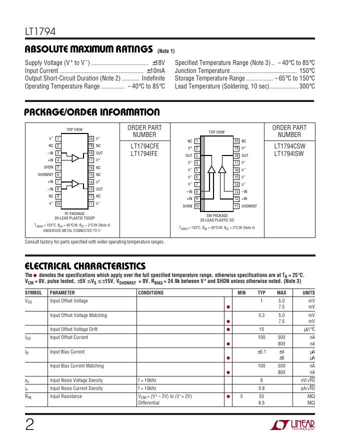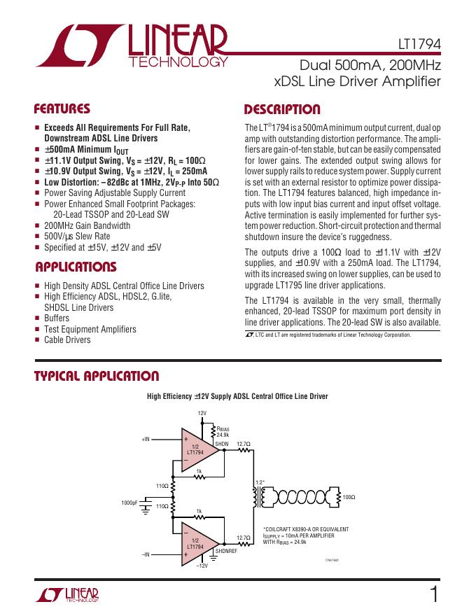 LINEAR TECHNOLOGY LT1794 数据手册.pdf