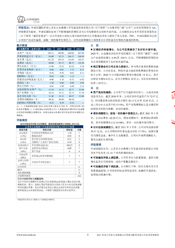 中诚信:江苏省太仓港港口开发建设投资有限公司2021年度信用评级报告.pdf