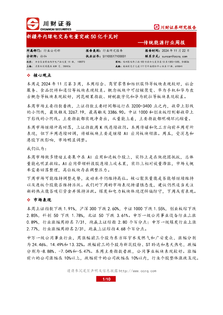 川财证券:传统能源行业周报:新疆年内绿电交易电量突破50亿千瓦时.pdf
