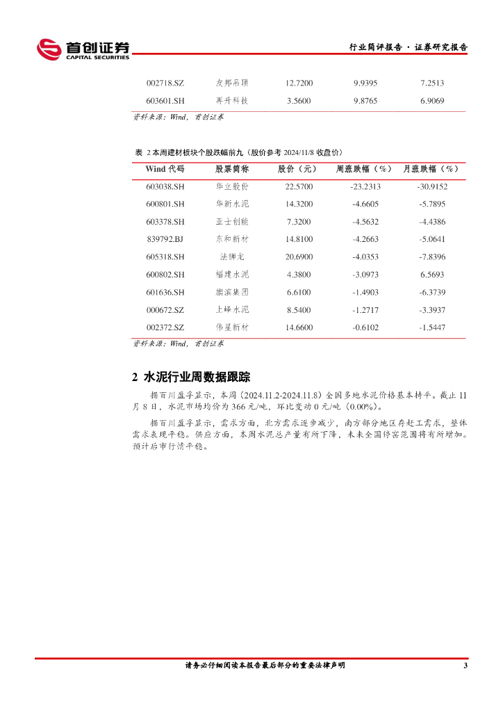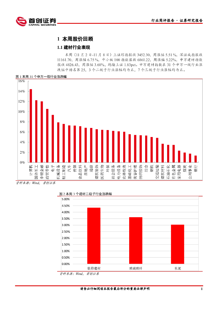 首创证券:建筑材料行业简评报告:玻璃价格多地上涨,行业表现稳中向好.pdf
