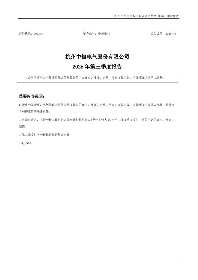002364-中恒电气:2025年三季度报告.pdf