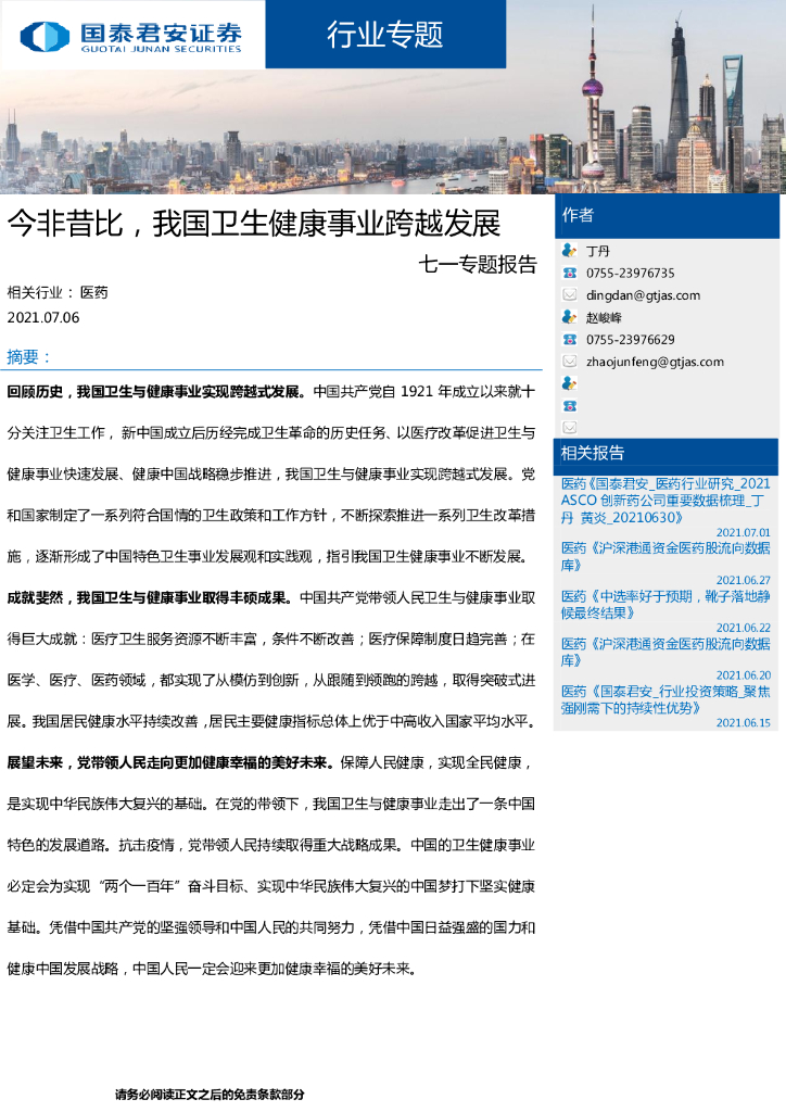 国泰君安:医药七一专题报告——今非昔比,我国卫生健康事业跨越发展.pdf