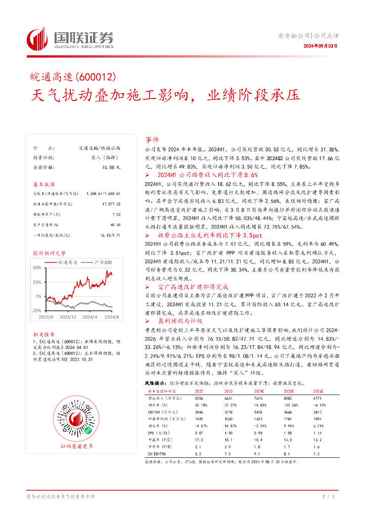 国联证券:皖通高速(600012)-天气扰动叠加施工影响,业绩阶段承压.pdf