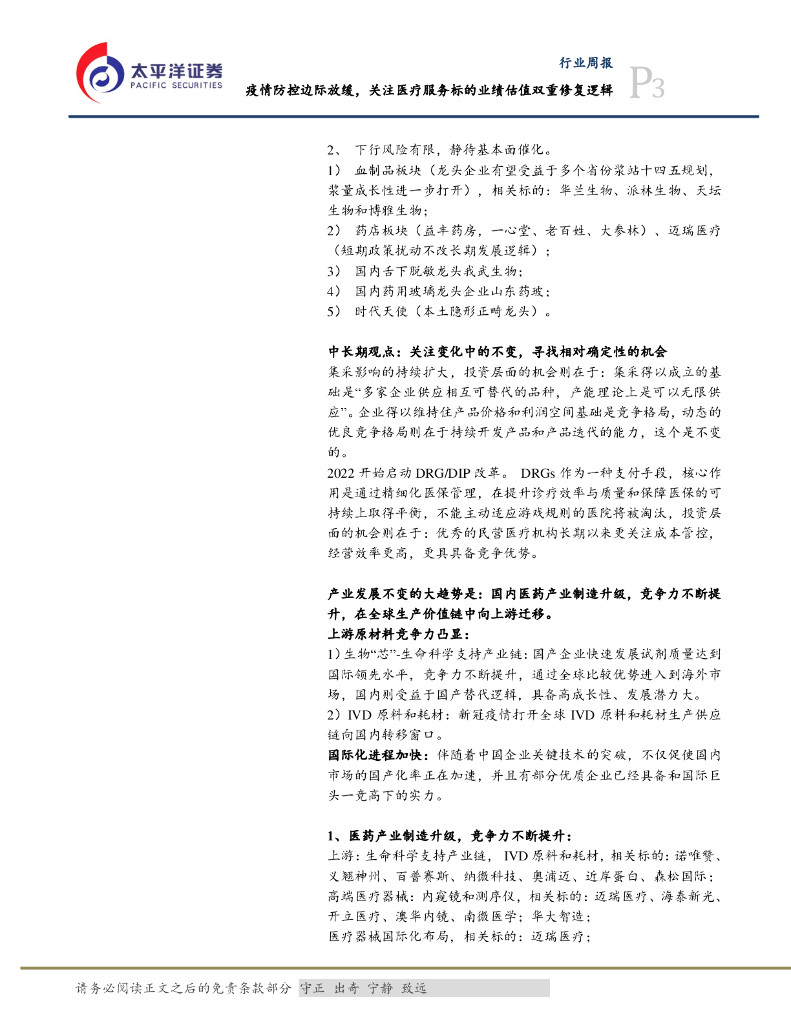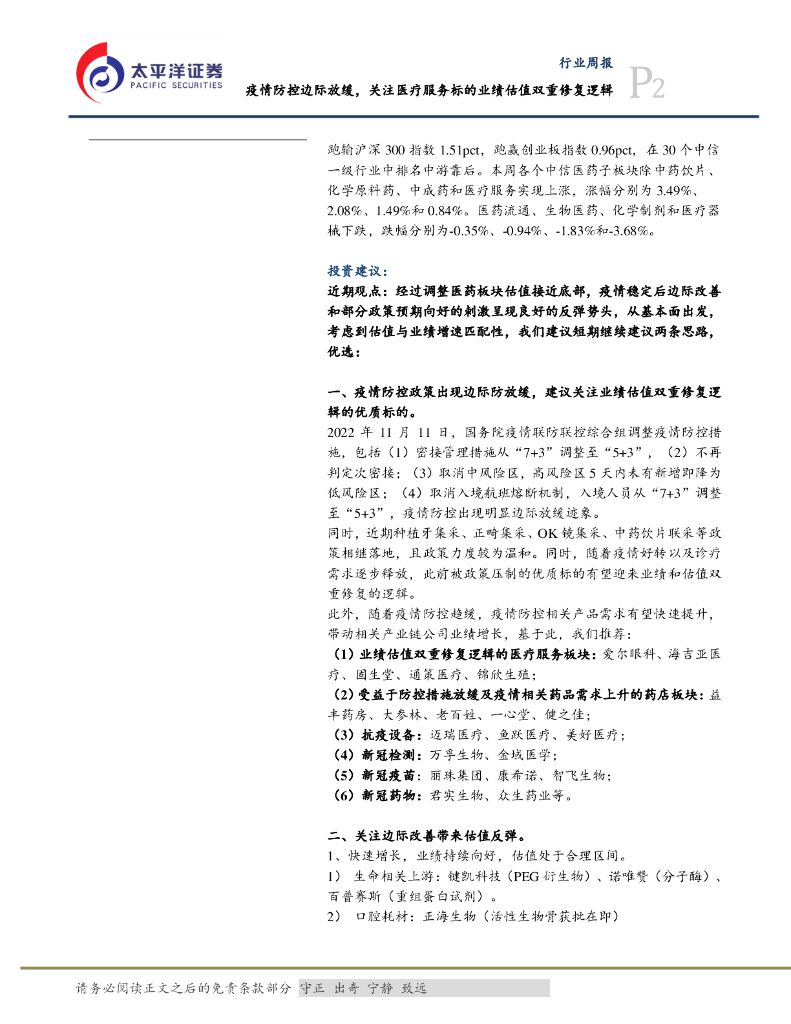 太平洋证券:医药生物行业周报:疫情防控边际放缓,关注医疗服务标的业绩估值双重修复逻辑.pdf