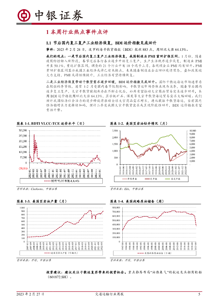 中银证券:交通运输行业周报:BDI运价指数见底回升,境外限制解除国际航班有望增加.pdf