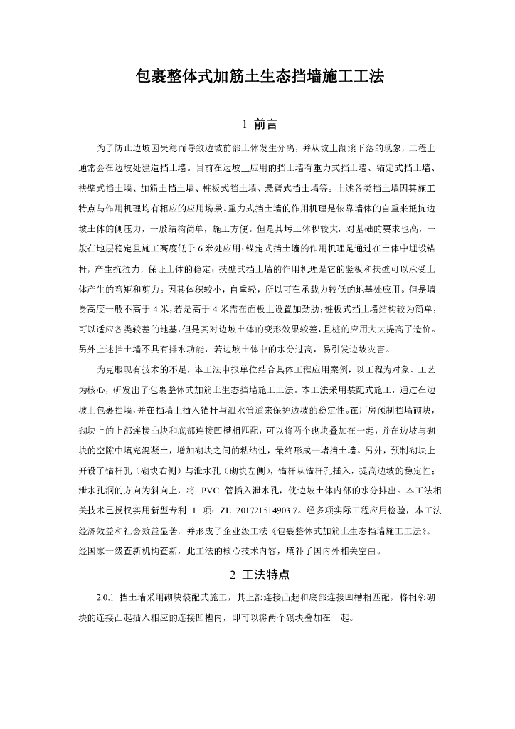 包裹整体式加筋土生态挡墙施工工法11页.pdf