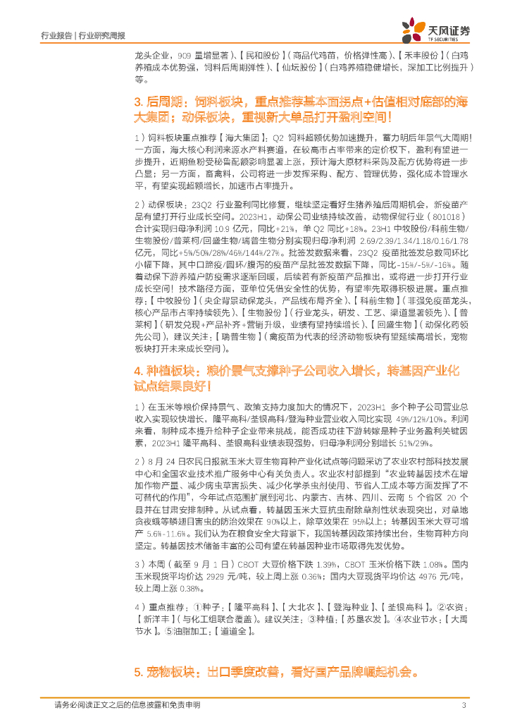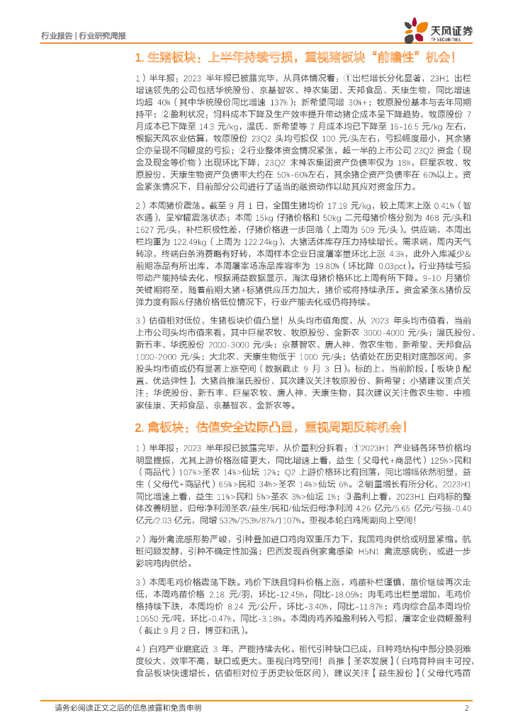 天风证券:农林牧渔2023年第35周周报:半年报披露完毕,如何看待各板块投资机会.pdf