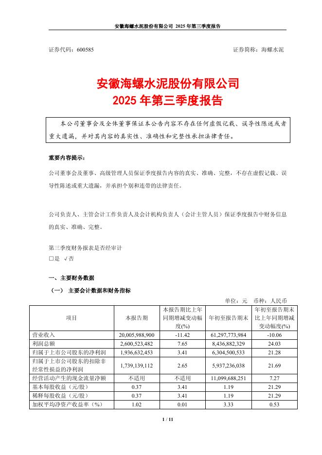 600585-海螺水泥:2025年第三季度报告.pdf