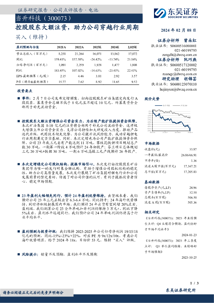 东吴证券:当升科技(300073)-控股股东大额注资,助力公司穿越行业周期.pdf
