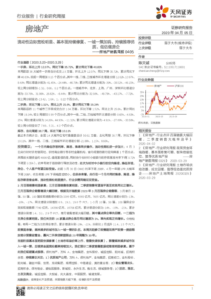 天风证券:房地产销售周报:流动性边际宽松明显、基本面持续修复、一城一策加码、持续推荐优质、低估值房企.pdf