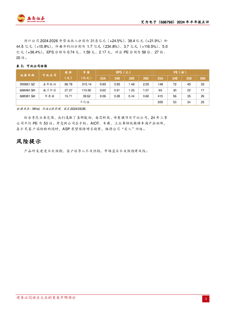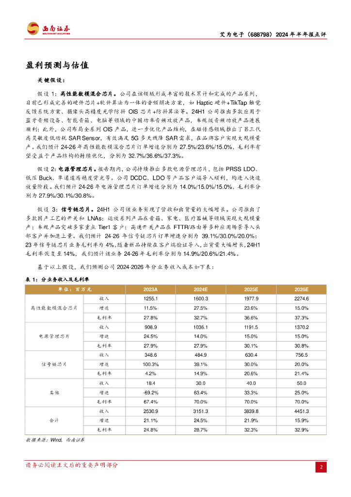 西南证券:艾为电子(688798)-2024年半年报点评:营收净利双增长,产品多点开花.pdf