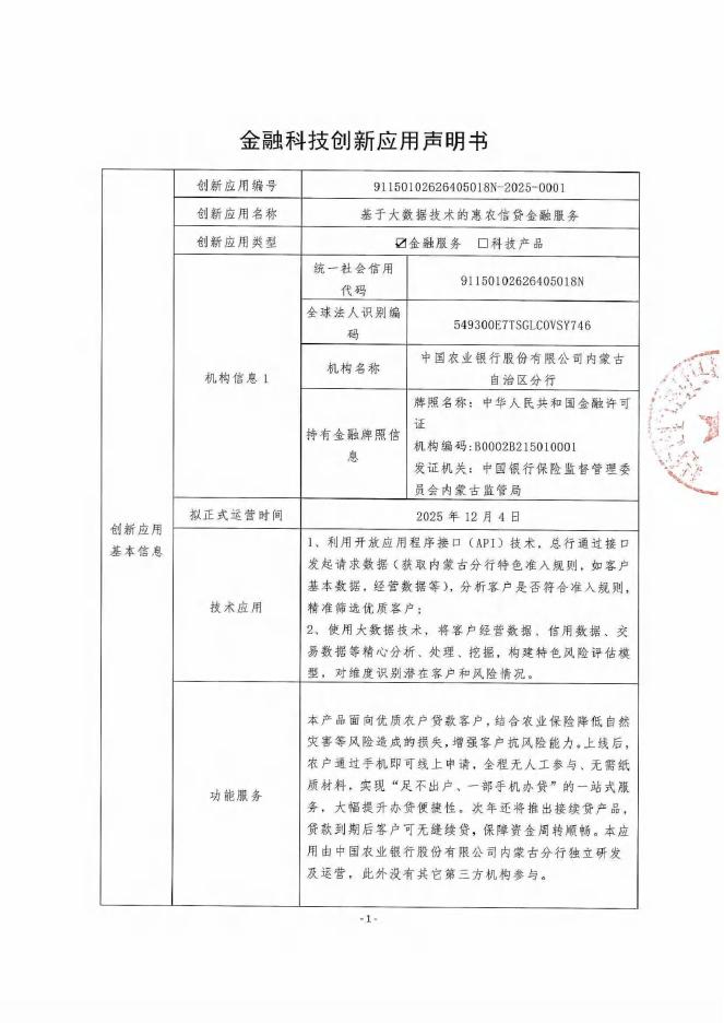 金融科技创新应用声明书:基于大数据技术的惠农信贷金融服务.pdf