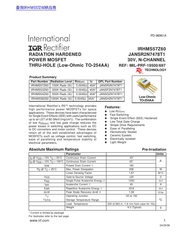 lnternational IOR Rectifier IRHMS57Z60 数据手册.pdf
