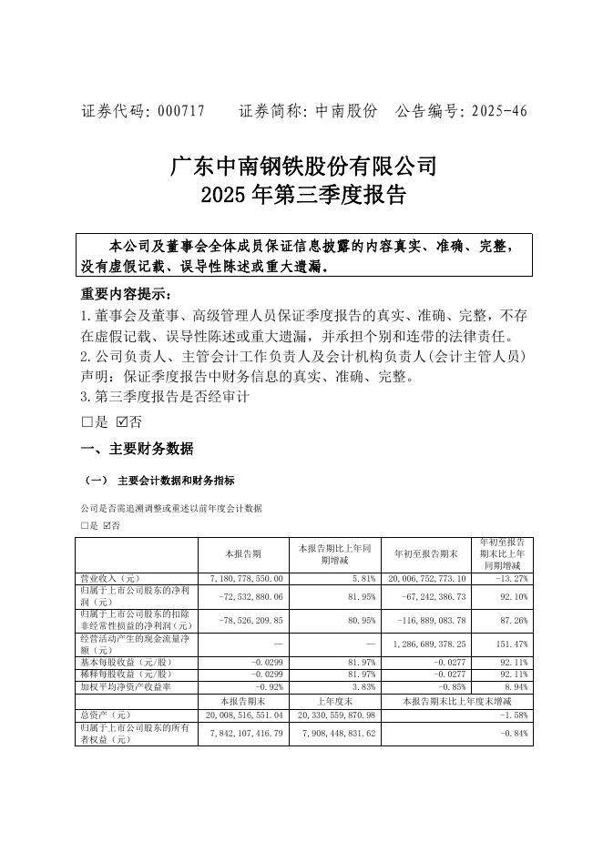 000717-中南股份:2025年三季度报告.pdf