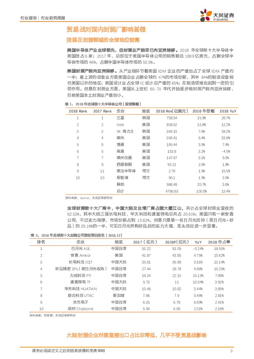 天风证券:半导体行业研究周报:加征10%关税对国内封测业影响甚微/“拐点+5G”投资逻辑不变.pdf