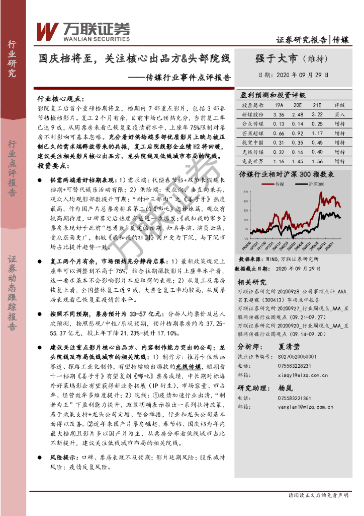万联证券:传媒行业事件点评报告:国庆档将至,关注核心出品方&头部院线.pdf