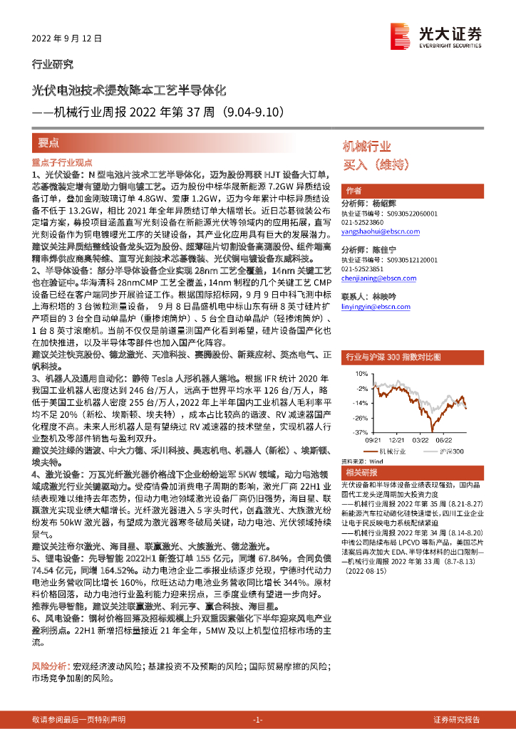 光大证券:机械行业周报2022年第37周:光伏电池技术提效降本工艺半导体化.pdf