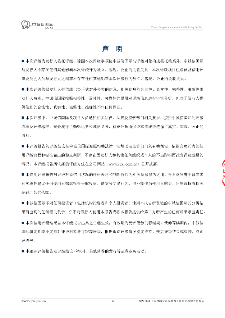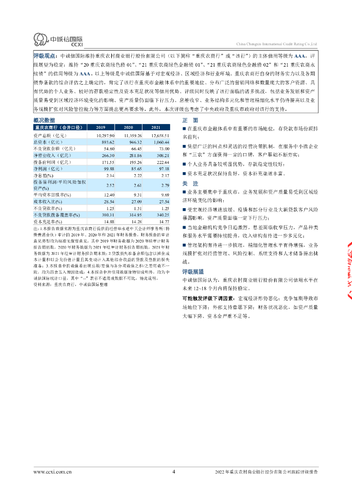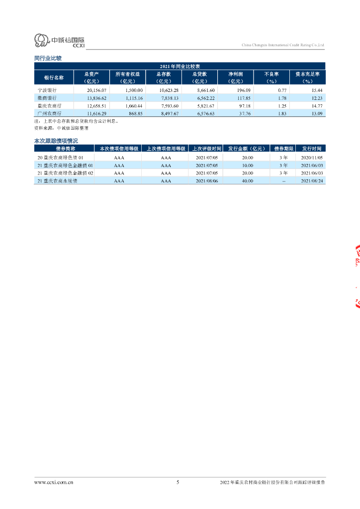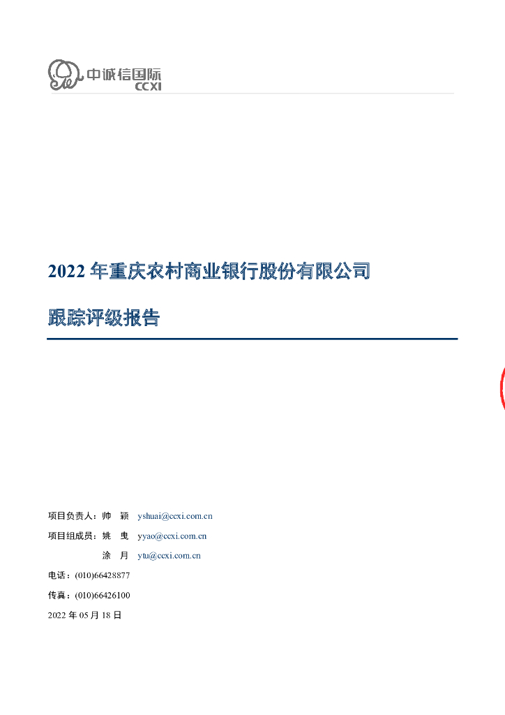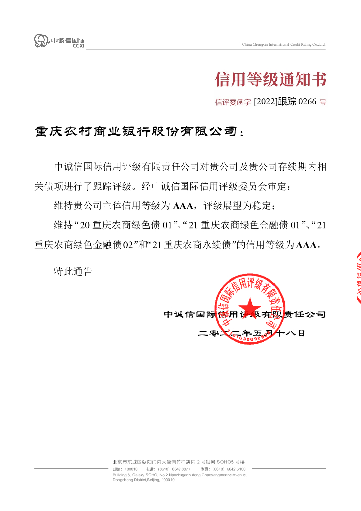 中诚信:2022年重庆农村商业银行股份有限公司跟踪评级报告.pdf