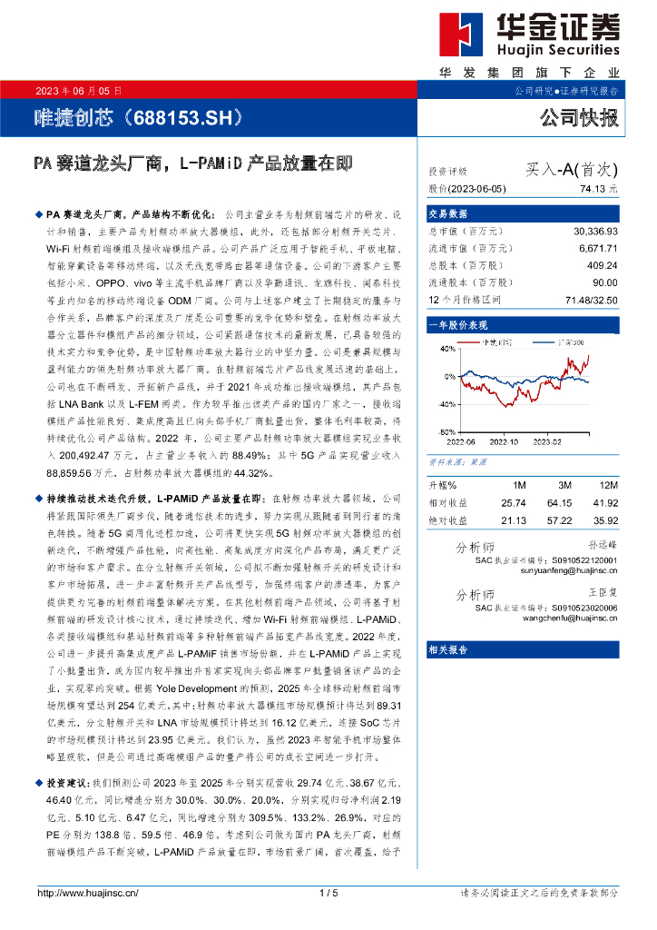 华金证券:唯捷创芯(688153)-PA赛道龙头厂商,L-PAMiD产品放量在即.pdf