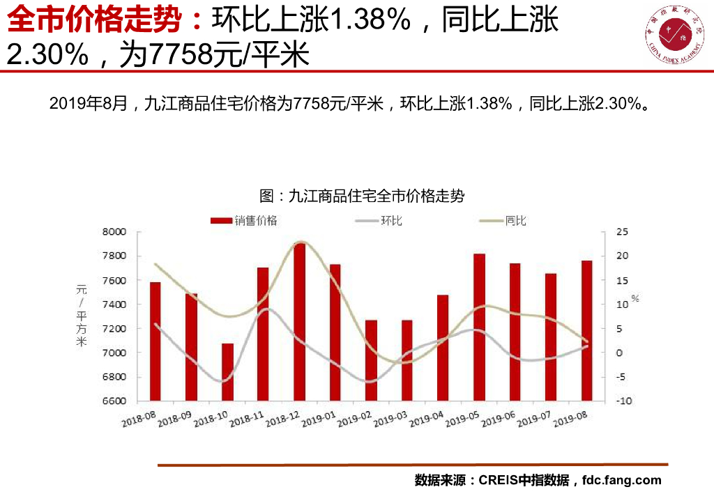 中国指数研究院:九江房地产市场快报(2019年8月).pdf