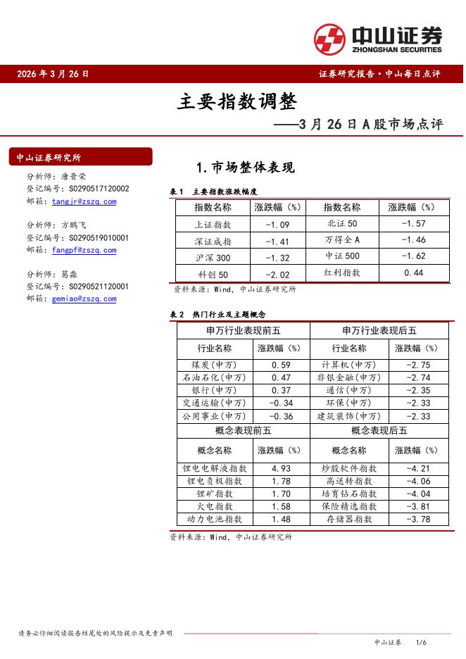 中山证券:A股市场点评:主要指数调整-260327.pdf
