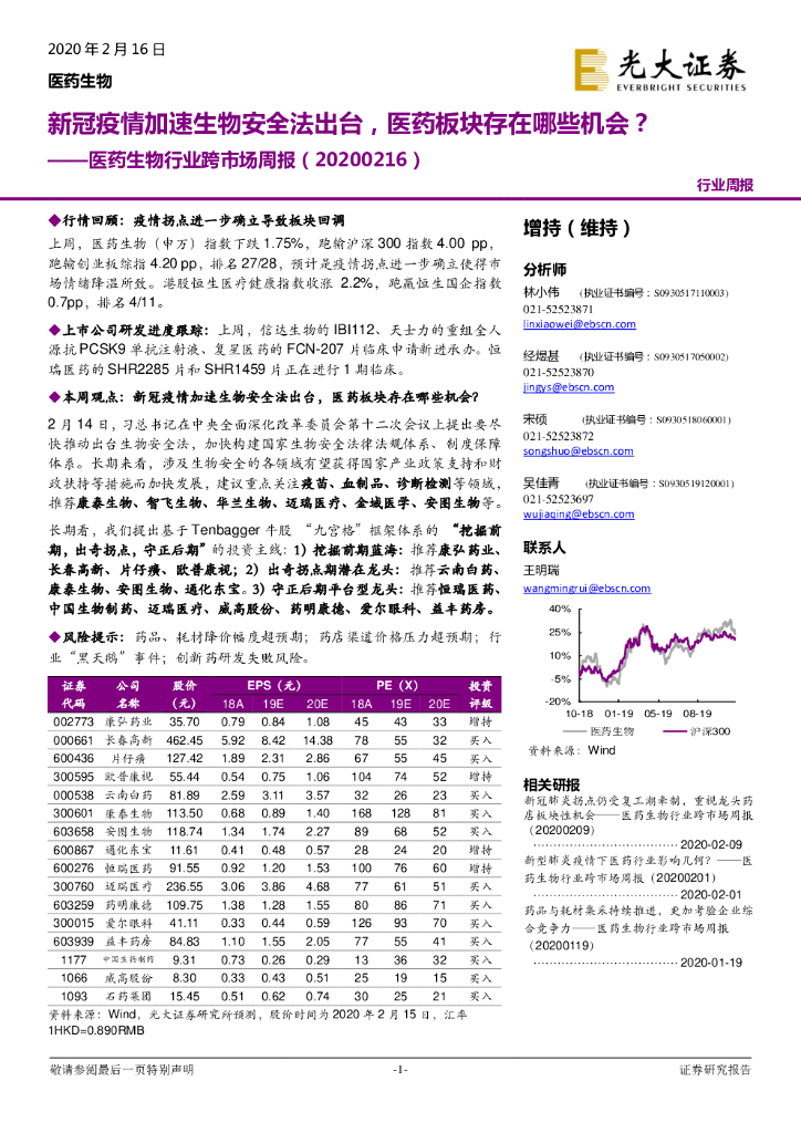 光大证券:医药生物行业跨市场周报:新冠疫情加速生物安全法出台,医药板块存在哪些机会?.pdf