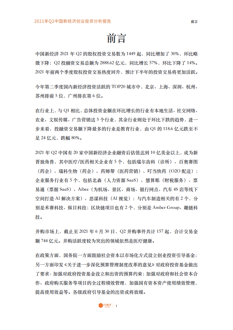 IT桔子:2021年Q2中国新经济创业投资分析报告.pdf