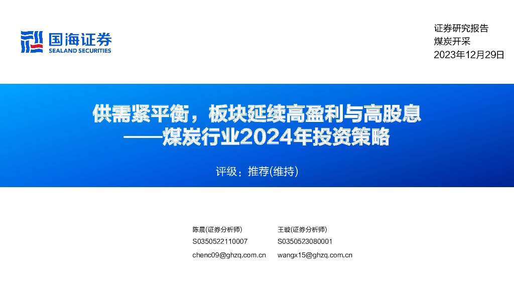 国海证券:煤炭行业2024年投资策略:供需紧平衡,板块延续高盈利与高股息.pdf
