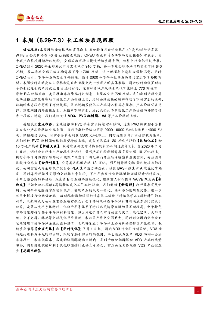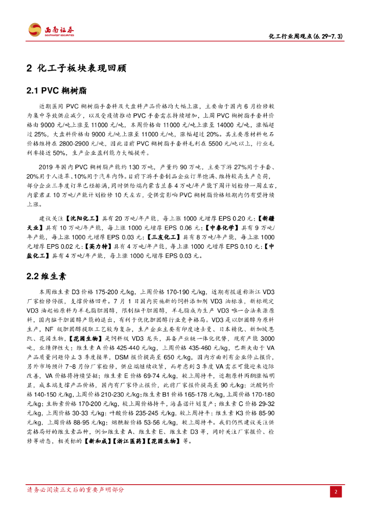 西南证券:化工行业周观点:PVC糊树脂大幅上涨,VD3新国标行业影响深远.pdf