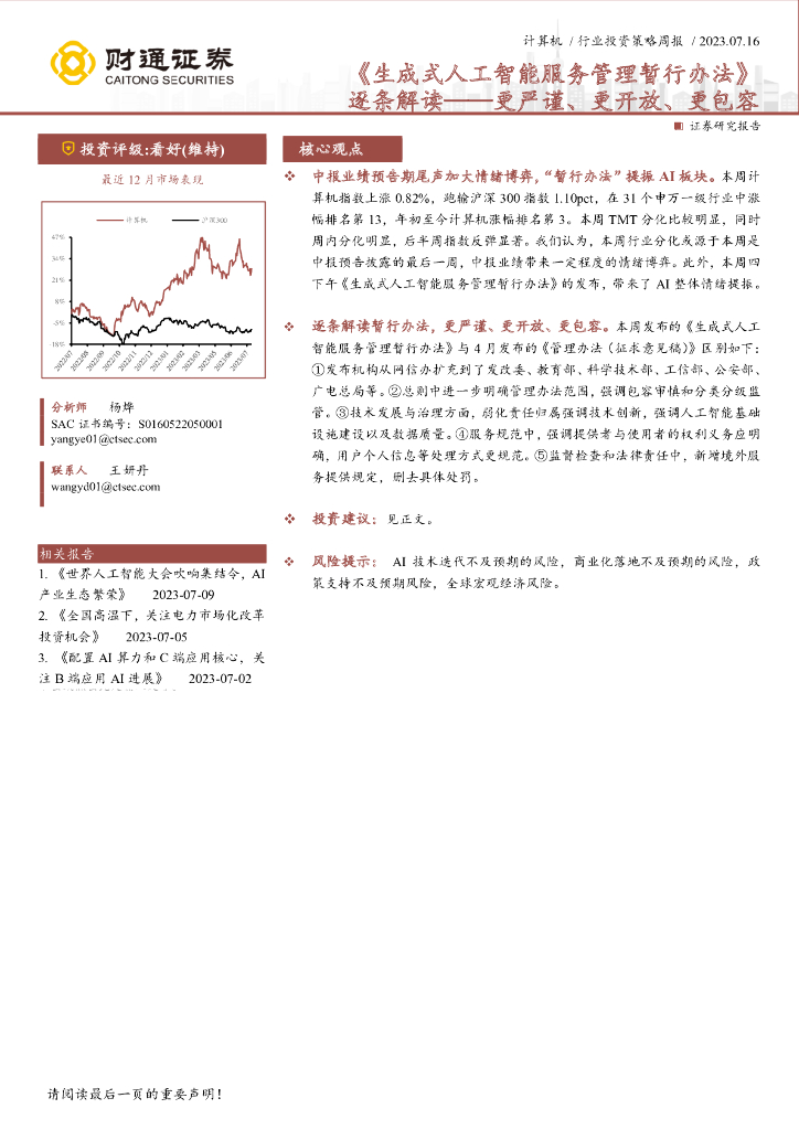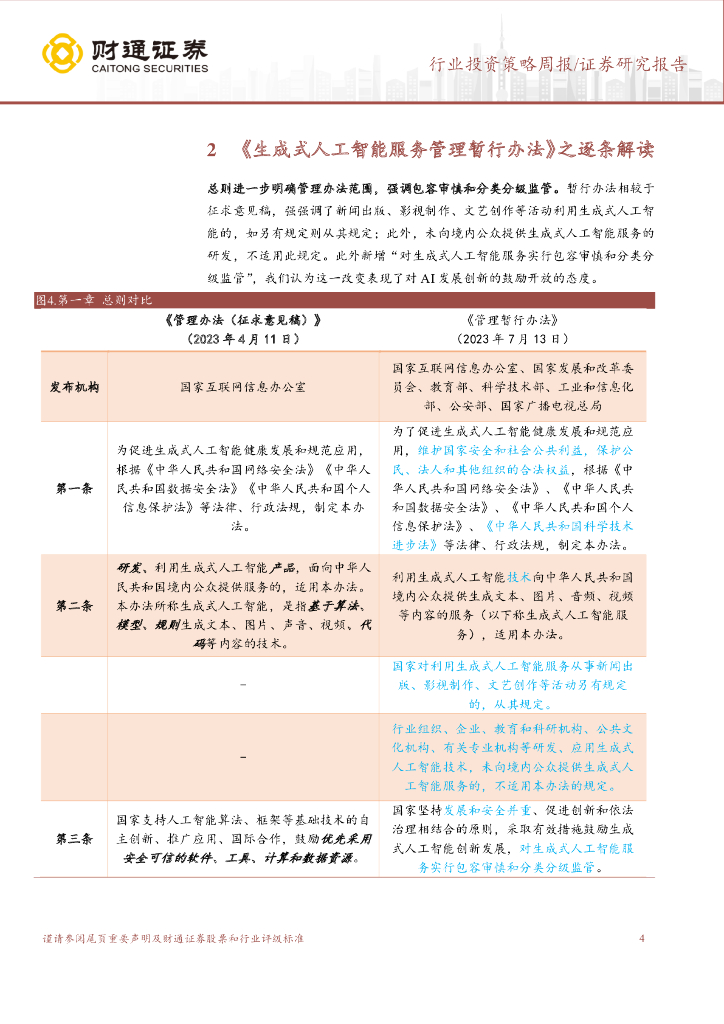 财通证券:计算机行业投资策略周报:《生成式人工智能服务管理暂行办法》逐条解读-更严谨、更开放、更包容.pdf