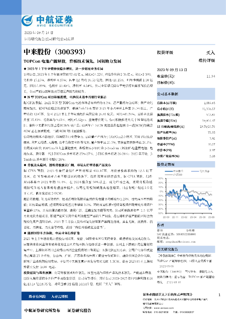 中航证券:中来股份(300393)-TOPCon电池产能释放,背板技术领先,国资助力发展.pdf