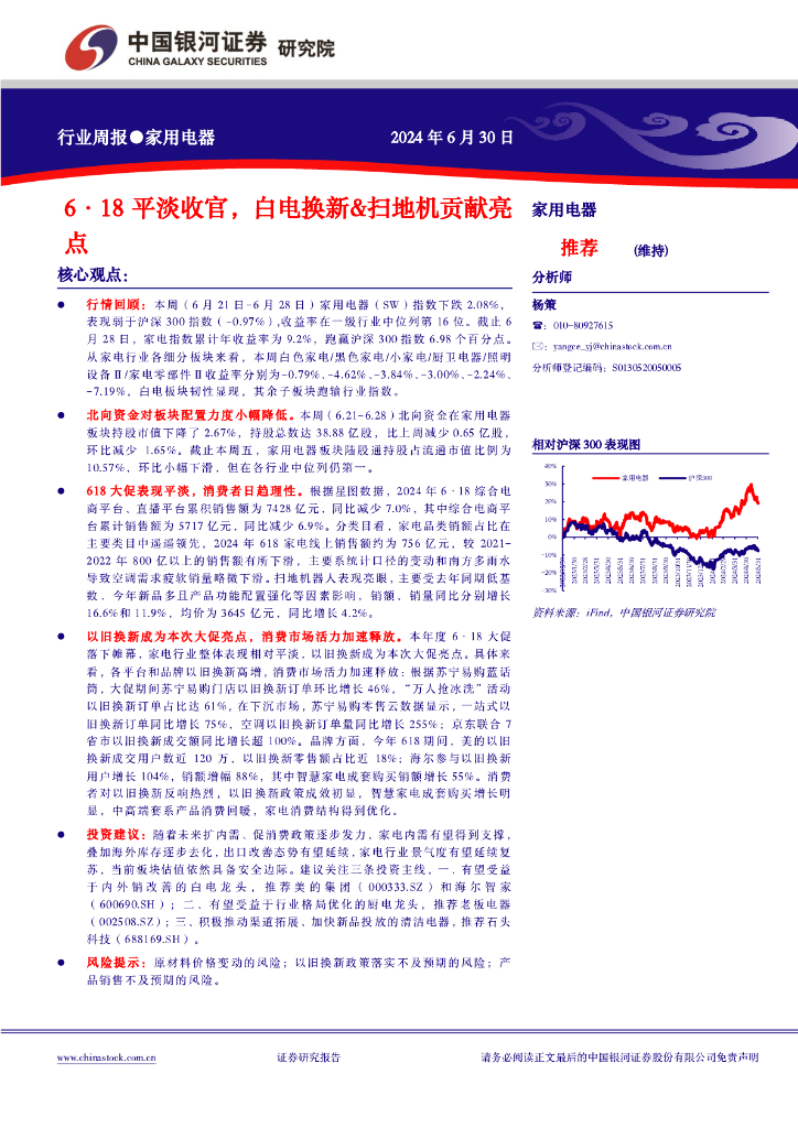 中国银河:家用电器行业周报:6·18平淡收官,白电换新&扫地机贡献亮点.pdf